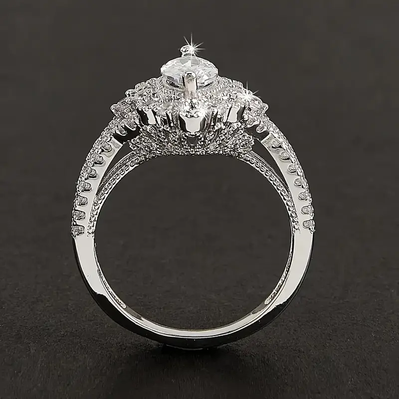 S925 Sterling Silver Halo Ring – Elegant Cubic Zirconia Jewelry